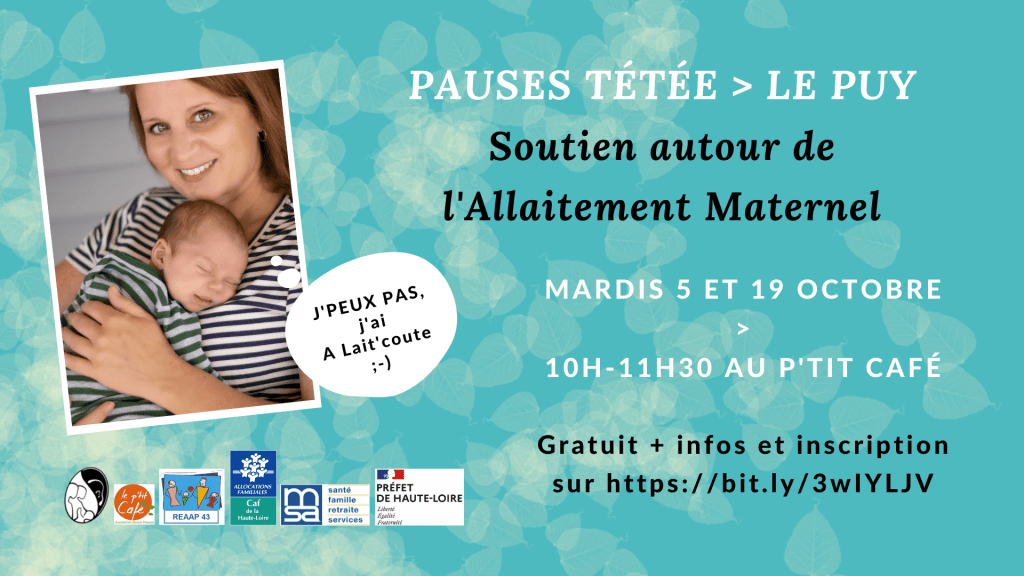 C’est ce qu’A Lait’coute vous propose une fois par mois depuis 10 ans maintenant. Bon, ce mois-ci, il y aura 3 rencontres allaitement en Haute-Loire. đ„ł
